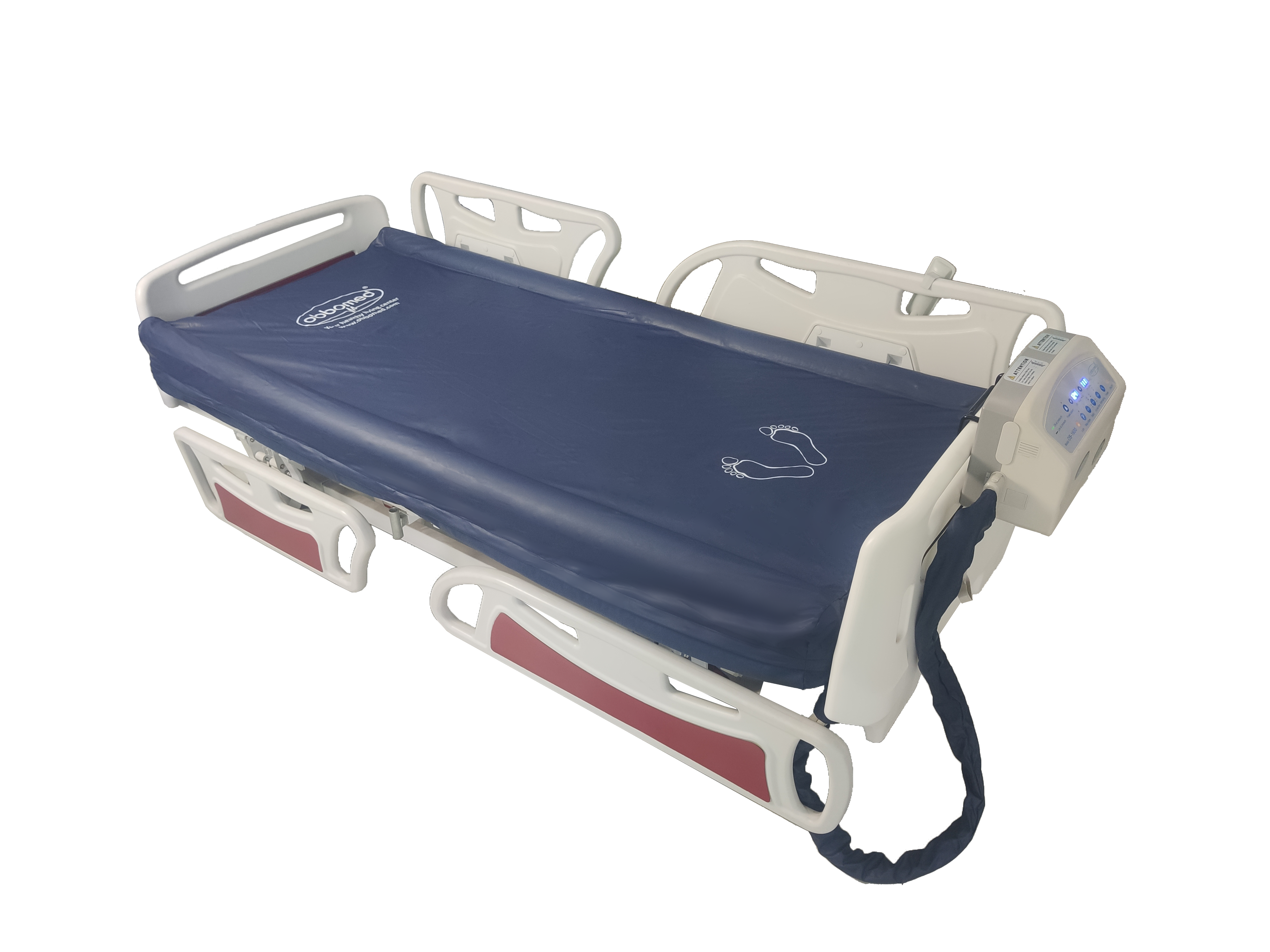 - Sinking Feature + Centralization: Special air cells provide sinking feature of the mattress, which lowers the mattress surface up to 5 inches deep and keep patient Centralization while alternating and self-lateral-wave rotation are activated. This creates a 9-inch soft barrier to keep the patient safely placed in the bed even during 40-degree rotation while still granting easy access to caregivers.